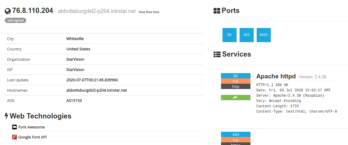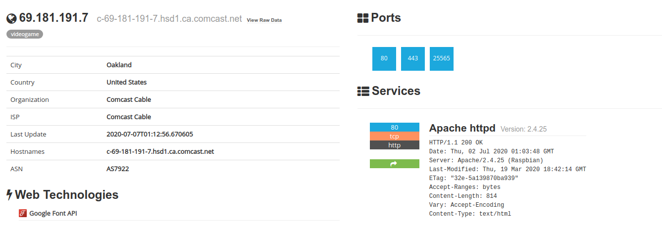 Something I like doing every once in a while when bored, is searching Shodan for Raspberry Pi webservers. It's kind of cool, because a lot of these are just regular folks hosting a web server on a Raspberry Pi with whatever the heck they felt like throwing on it. Sometimes that's a basic website with photos. Other times, it's a half-finished concept that they probably never got around to doing anything with and forgot about. I think the coolest part is seeing a part of the internet that looks like the wild west. Just things that are built and aren't necessarily done by a professional developer with a zillion dollar marketing team.