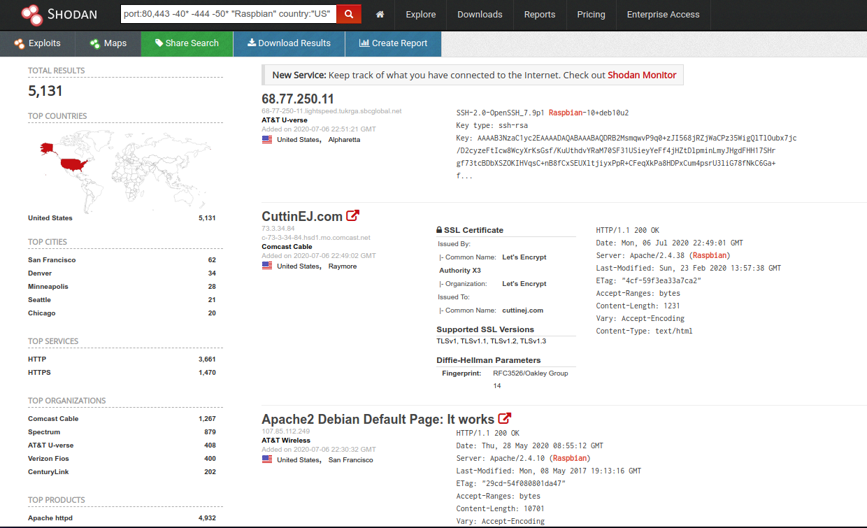 Anyhow, searching for Raspberry Pis on the internet is fun. You will need a Shodan account. I'm not sure if it works with the free tier, but I suppose you can try it out.