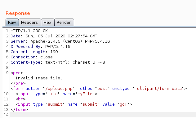 When we attempted the file upload earlier, we noticed that we got an invalid image file error.