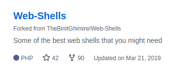 We go through his repos and find a collection of webshells, with the description: "Some of the best web shells you might need."