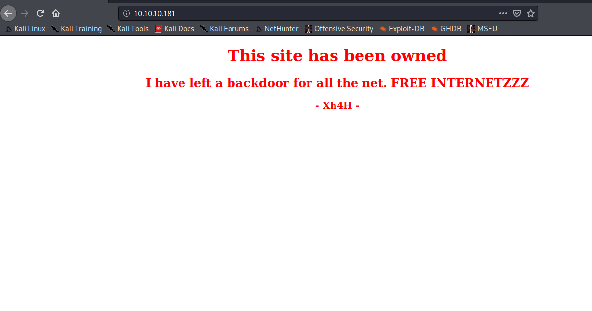 Service Info: OS: Linux; CPE: cpe:/o:linux:linux_kernelWhen we go over to HTTP, we can another message from Xh4H. It looks something like below: