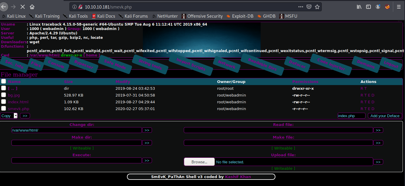 <!--Some of the best web shells that you might need ;)-->This part of the box was a bit guess-worky, IMO. This is supposed to clue you into checking Xh4H's GitHub and finding a repo that contains webshells.