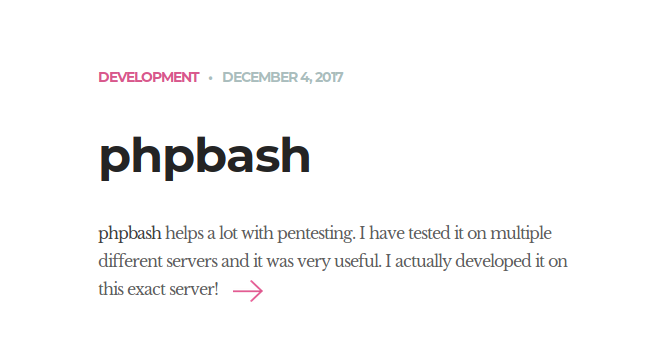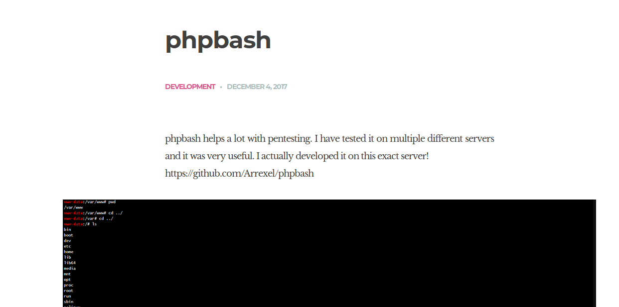 It's a simple site that reads phpbash. Clicking on that takes us to a link showing us a tool called phpbash along with another link to a GitHub page: