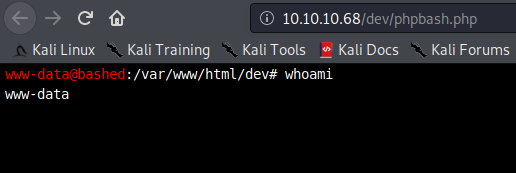 Bashed is a pretty easy box. It sets you up for an easy win and gives you a really cool tool I've used quite a few times for gaining web shells, like the one I used in Networked. It's called phpbash, and you can get it here.
